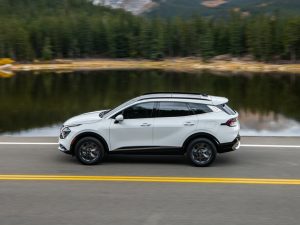 Những đường gân nổi được nhấn nhá ở khắp khu vực thân xe giúp KIA Sportage Hybrid trở nên thể thao hơn và nóc xe dần hạ thấp về phía sau cũng giúp xe ấn tượng hơn. Bộ la-zăng xe Kia Sportage 2022 dạng cánh hoa mới với kích thước 18 inch, vòm bánh xe đã loại bỏ chi tiết nhựa, thay vào đó là đường dập nổi mới mẻ.