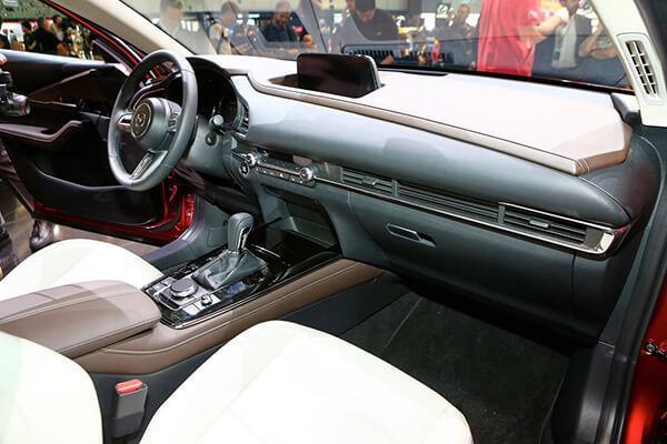 Khoang lái của CX-30 mang đến cảm giác rất dễ chịu cho người dùng bởi cách thiết kế tối giản, gọn gàng ở bề mặt táp lô. Các nút bấm cơ học gần như không xuất hiện ở khu vực này.