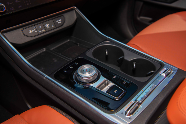 Cần chuyển số điện tử dạng núm xoay có họa tiết tinh xảo tích hợp các phím bấm chức năng, được bố trí nhỏ gọn dễ thao tác và tối ưu không gian.