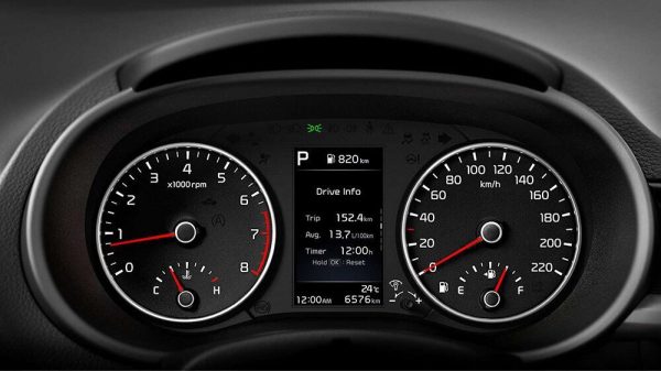 Đồng hồ sau vô-lăng KIA Morning AT là loại cơ học kết hợp màn đơn sắc.